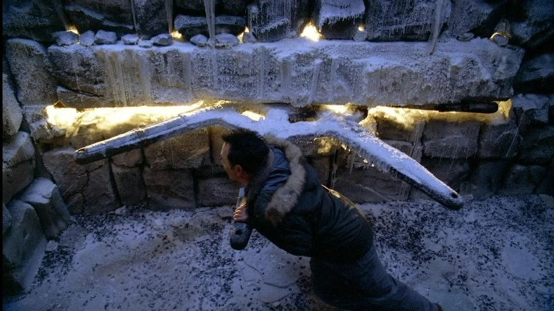 العجلة المجمدة هي عجلة ذات ثمانية أرجل وضعت على جدار غرفة جليدية قديمة عميقة تحت محطة السحلبية. قبل بناء السحلبية، كان يتم الدخول إلى غرفة العجلة عبر بئر. في ديسمبر 2004، أدار بن العجلة للكي يحرك الجزيرة، ناقلة بن إلى المخرج، لكن من الواضع بأنه تسبب في خلع محور العجلة مما أدى إلى تحركها بطريقة متقاطعة، و سبب ومضات الزمن لجولييت و بقية ناجي أوشيانيك الرحلة 815، و القادمين الجدد من سفينة الشحن، والذين لا يزالون على الجزيرة أو في المياه المحيطة بها. لذلك بعد عدة أيام قام جون لوك الذي كان يتنقل عبر الزمن هو أيضا بإعادة إدارة العجلة لتحقيق الاستقرار مرة أخرى ووضع حد لومضات الزمن. فنقل هو أيضا إلى المخرج.