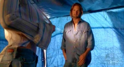 Mientras, Sawyer entra en la tienda de Kate cuando ella se está cambiando, y le pregunta si ella le dijo a Jack sobre lo que pasó en las jaulas. Ella le dice que Jack les vio a través de una de las cámaras de seguridad. Sawyer intenta flirtear con ella, pero Kate no le hace caso alegando su poco romanticismo. Sawyer le pregunta si necesita que le grabe una cinta con las mejores canciones y ella le responde que no estaría mal.
