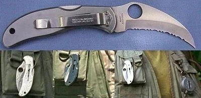 - Locke también tiene un Spyderco Harpy knife ajustado al lado derecho de su pantalón.