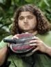 Ana Lucía talla una estaca con su cuchillo de caza.
