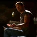 Locke corta un mango con un cuchillo cuando está hablando con Ben