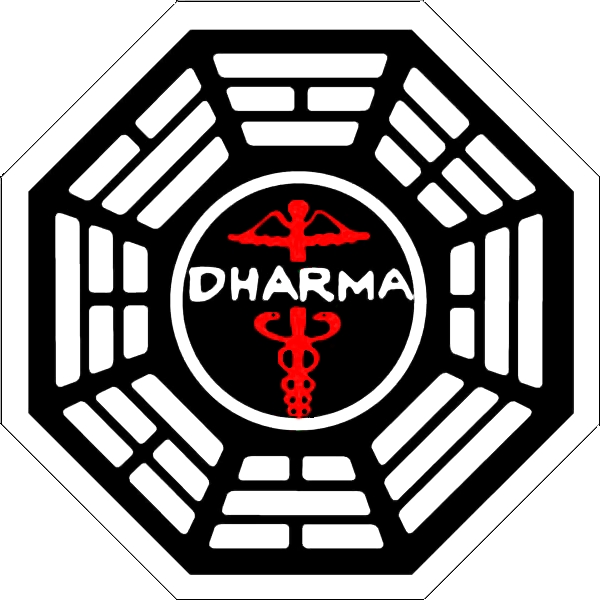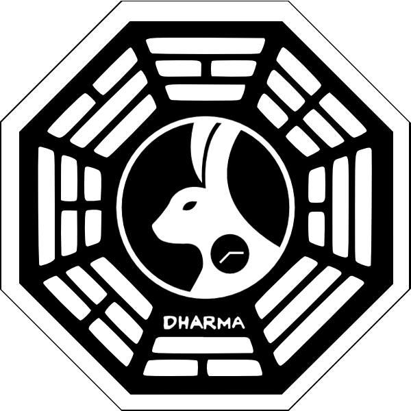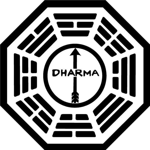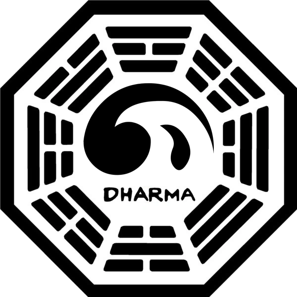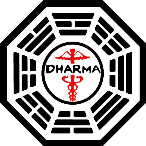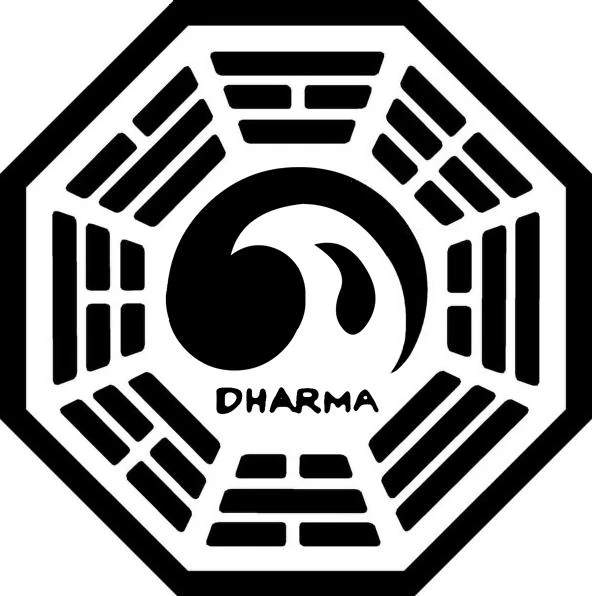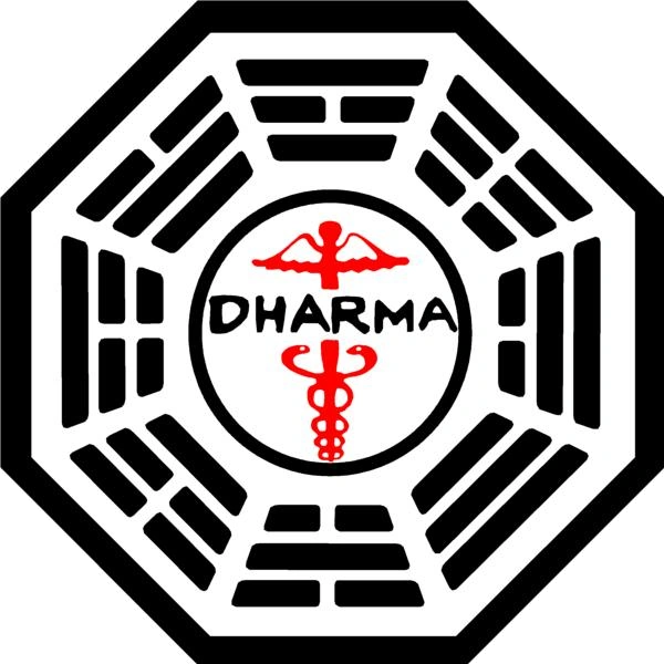- Es el emblema dominante de la Iniciativa Dharma, correspondiente a la iniciativa como conjunto y representando a todas las estaciones Dharma, las pruebas y las actividades.