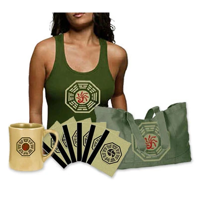 - Fue encontrado más tarde en la página Dharma Gear el día 8/16/2007 en la tienda online de la ABC. El emblema todavía estaba presente en la fecha 05/29/2008, sin cambios, incluso después los productos nuevos fueran agregados a la tienda online de la ABC. Es notable que el «emblema falso» esté puesto, en la misma fotografía, al lado de las puertas de El Cisne, con la insignia probablemente verdadera en las puertas dichas. La presencia del emblema en la página de la ABC hizo que aumentaran las preguntas sobre sus orígenes.