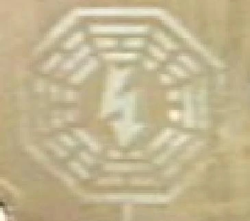 - Este emblema, con el orden de los trigramas cambiado, apareció en el anorak de Ben cuando estaba en el desierto. ("The Shape of Things to Come") Sin embargo, los trigramas del abrigo estaban correctos antes de que Ben moviera la Isla. ("There's No Place Like Home - Part 3")