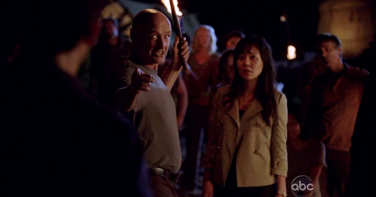 - John entra en el campamento llevando un jabalí muerto, como él hizó en los primeros días en la Isla. ("Walkabout")