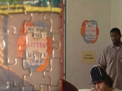- While Hurley was in the Santa Rosa Mental Health Institute, there was a sign that read "Rec Room Rules: Listen Respect Others". ("Dave")