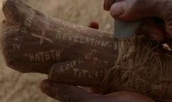 Tras la muerte de Eko, Locke recuperó el palo para usarlo como marca de su tumba. Mientras estaba clavando el palo en el suelo, se sorprendió al descubrir la inscripción "Levanta tus ojos y mira al norte John (Juan) 3:05". ("I Do")