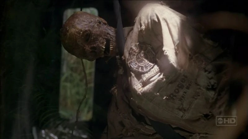 El cuerpo momificado de Roger, como se encontró en la Furgoneta Dharma. ("Tricia Tanaka Is Dead")