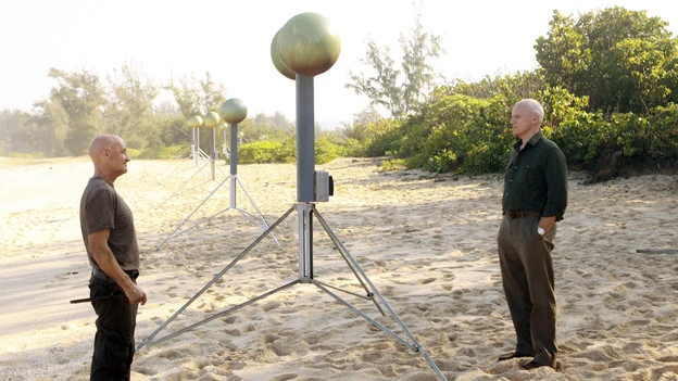 El Hombre de Negro llega en canoa a la isla Hidra. Una serie de pilares de alta tensión sónicas se alinean alrededor de la playa. Disparos caen cerca de El Hombre de Negro y el equipo de Widmore sale de entre los arbustos. Némesis sonríe y dice que viene en son de paz. El equipo de Widmore y el Hombre de Negro caminan por la playa separados por la barrera sónica. De repente, Widmore se acerca a la barrera, y le pregunta al Hombre de Negro si sabe quién es él. Él dice que sí, y hace la misma pregunta a Widmore. Le responde que "obviamente no es John Locke", y todo lo que sabe de él es "una combinación de mitos, historias de terror, y ruidos en la jungla durante la noche". El Hombre de Negro señala que sabe más debido a los pilones ubicados en la playa. Widmore le pregunta por qué vino. Le responde que él tiene a una de sus personas, Jin Kwon. Widmore niega tener conocimiento de ello. El Hombre de Negro lo mira cautelosamente, y le dice que "un hombre sabio dijo una vez que la guerra vendría a esta isla. Creo que acaba de llegar".