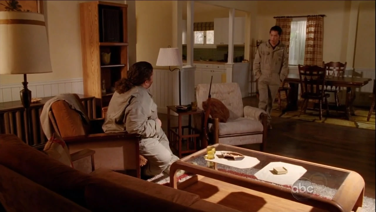- Miles y Hurley juegan dominó cuando Juliet entra a la casa a hablar con Jack. (Juegos) (Blanco y negro)