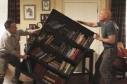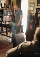 - Dans le bureau de Ben, il y a une penderie devant la porte avec des hiéroglyphes, au lieu des étagères que l'on voit selon le même angle de vue dans Liste noire.