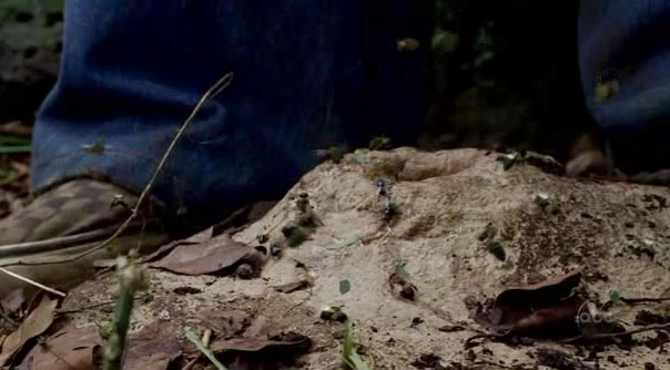 Alors que Jack, Charlie et Kate sont partis à la recherche d'eau, Charlie marche accidentellement sur un essaim d'abeilles. Jack lui dit de rester calme mais Charlie prend peur. Les abeilles attaquent alors Charlie, Jack et Kate qui sont obligés de se dévétir pour enlever les abeilles. (Regard vers l'ouest)