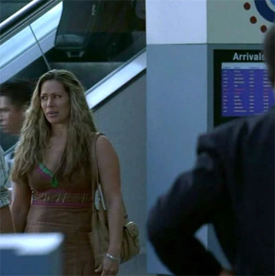 Elle est vue sur la plage après le crash et à l'aéroport avant le décollage.