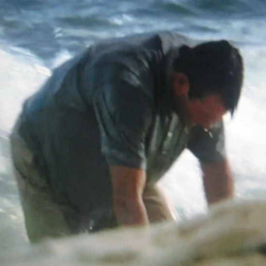 Il est vu sur la plage après le crash et à l'aéroport avant le décollage.
