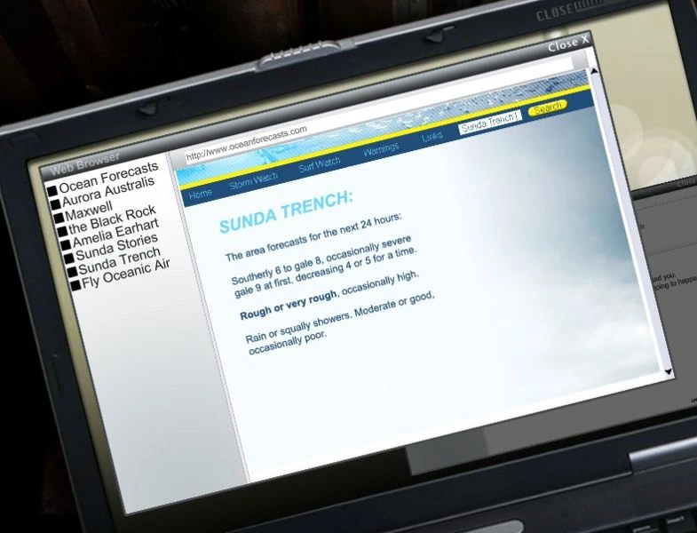 Sam reçoit un e-mail d'Austral Air dans lequel Isaac Chapman dit qu'un nouveau poste va se libérer et qu'il aimerait bien organiser un entretien avec Sam à Sydney. Ce dernier envoie un e-mail de réponse disant qu'il ne peut malheureusement pas se rendre à l'entretien car il n'est pas sur place. Sam reçoit également un e-mail sans expéditeur ni sujet et contenant uniquement les nombres « 411151057 », que l'on traduit grâce au code Leet en « All is lost » (« tout est perdu »). Il envoie également un e-mail à Tracey en réponse au message vocal qu'elle lui a laissé. Il s'excuse de ne pas l'avoir appelée. Sam regarde le site oceanforecasts.com pour trouver l'océan dans lequel se trouve la Fosse de Java.