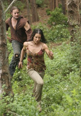Kate et Sawyer courent pour échapper aux Autres. (Loin de chez elle)