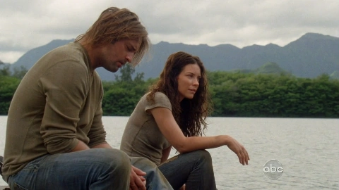 Kate et Sawyer rament pour rejoindre l'île principale. (Étranger parmi eux)
