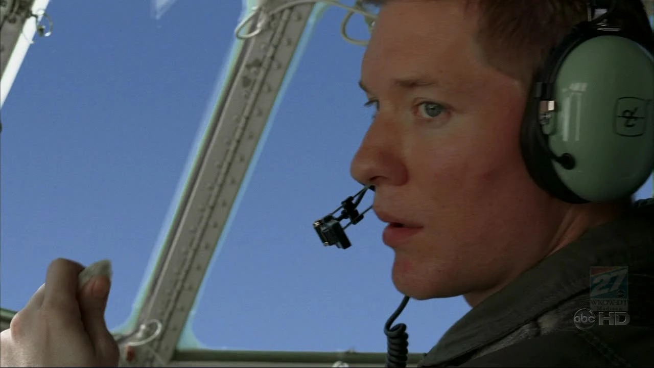 Dans l'avion des gardes-côtes US qui transporte les « Six du vol Oceanic », le co-pilote serre une patte de lapin porte-bonheur car il est inquiet à cause de leur « cargaison ». (Ceux qui restent (1/3))