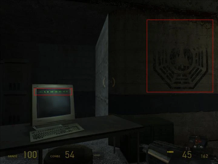 On peut très bien reconnaitre sur le screen, les fameux Nombres de la série ainsi qu'une parodie du logo Projet DHARMA. C'est en réponse à la référence faite à ce jeu dans la première saison (Episode 21). (Elle ou lui)