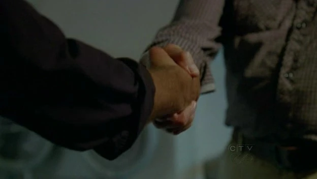 סוייר לוחץ את ידו של צ'ארלס ווידמור. ("איסוף מידע")