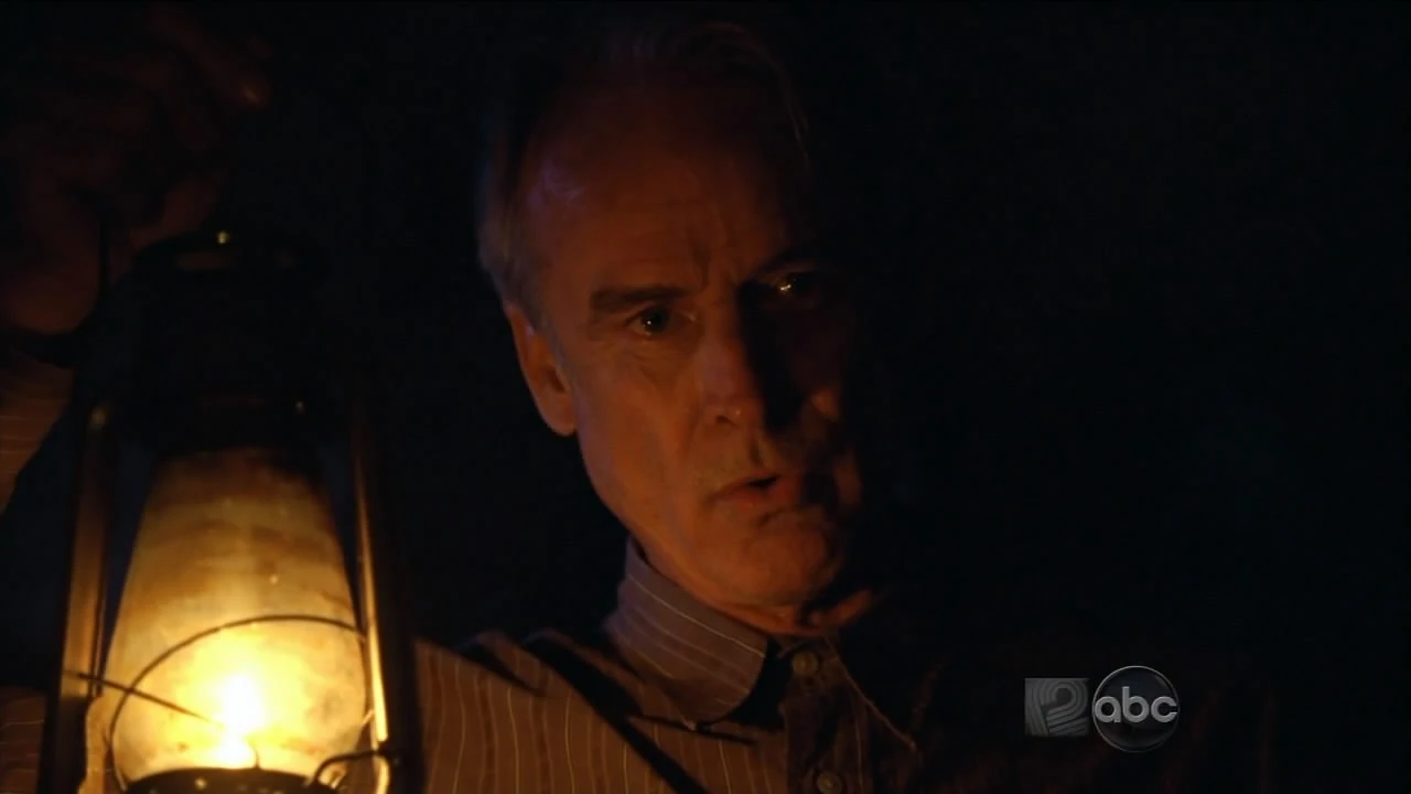 הוא מסביר ללוק איך לתקן את הגלגל ואומר שהוא רק החליק מצירו. לוק זוחל אל מעבר לפינה, ושם הוא רואה את הגלגל מתנודד קדימה ואחורה ופולט הבזקי אור ירוק. נראים ברקע כתבי חרטומים. לוק דוחף את הגלגל למקום בדיוק כשכריסטיאן אומר לו למסור דרישת שלום לבנו. לוק שואל מי הוא בנו כשהחדר נבלע ע"י אור מסנוור.