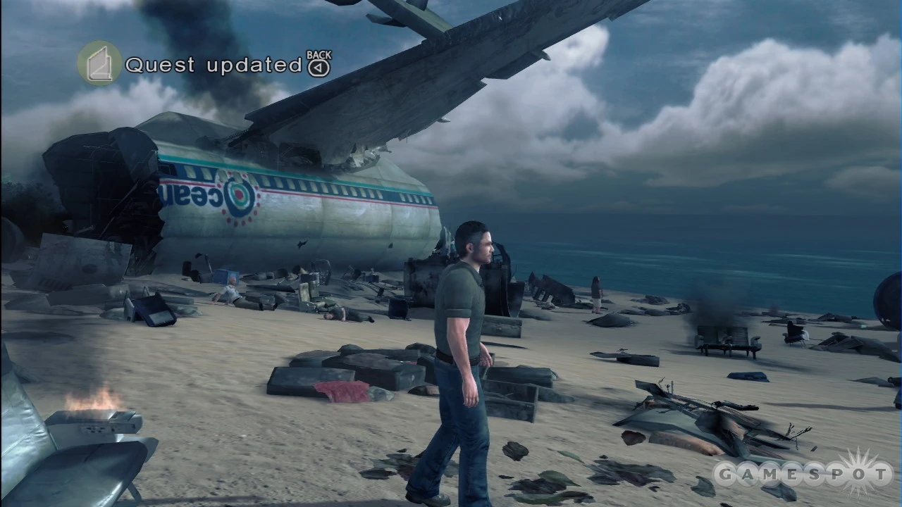 המשחק מתחיל עם אליוט על המטוס. הוא מדבר אל מישהו בטלפון, ואז מנתק. המטוס מתחיל לרעוד. צ'ארלי הולך מעבר לאליוט, וסינדי בעקבותיו מנסה לעצור אותו. מעט לאחר מכן עייני זימה מתחיל ללכת בדרכו אל אליוט בדיוק כשהמטוס מתחיל להישבר. הוא מועף מעלה לאוויר כשהמערבולת הופכת להיות קשה יותר ויותר. המטוס נשבר, אליוט רואה את תא הטייס נשבר ועף באוויר מהחלק האמצעי של המטוס, ולאחר מכן הוא מתעלף.