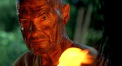 [Suddenly Locke is back in the sweat lodge. He starts to leave and suddenly we see the image of a snarling polar bear's face. Locke stumbles out of the sweat lodge, frightened.]