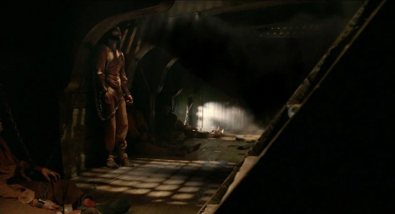 Jakiś czas później Ricardo mocuje się z łańcuchem, który go więzi. Niestety nic nie jest w stanie zrobić. Mijają kolejne godziny a na zewnątrz szaleje burza, wycieńczony Ricardo próbuje złapać do ust spadające krople deszczu. Niestety przez łańcuch nie może dosięgnąć. Mijają kolejne godziny, Ricardus lży na podłodze i próbuję za pomocą wymontowanego gwoździa uwolnić się z łańcuchów - niestety i ta technika na nic się zdaje. Jakiś czas później potwornie zmęczonego Ricardo budzi ze snu dzik grasujący po pokładzie i pożerający zwłoki niewolników. Jedyny ostały przy życiu człowiek odstrasza go.