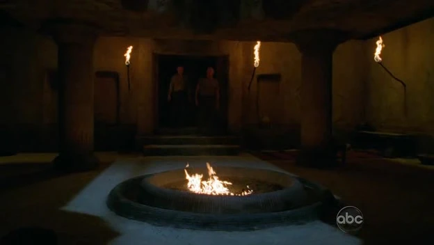 Kiedy grupa Ilany wraz z Frankiem dotarli do rzekomego domku Jacoba, znaleźli wokół niego popielny krąg, a wewnątrz fragment płótna przedstawiającego posag Tawaret stojący na brzegu. Wtedy grupa zrozumiała, że Jacob od dawna nie mieszkał w chacie, lecz w posągu. („The Incident: Part 1”)