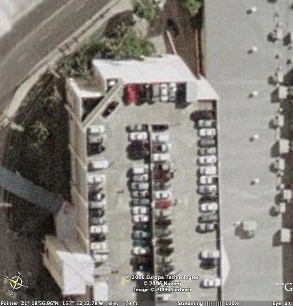 Imagem do telhado do Google Earth. Compare os fundos visíveis na cena