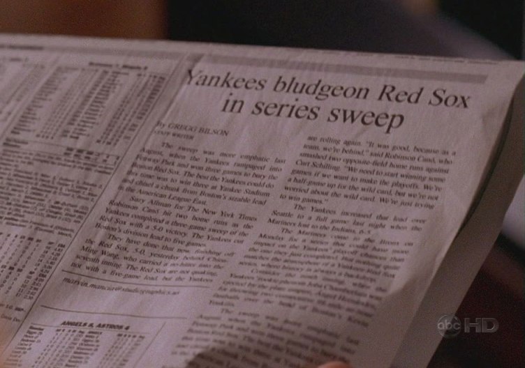 | (Something Nice Back Home) | No Flashback de Jack, o jornal é datado de Agosto de 2007, contradizendo assim, a data do funeral de Jeremy Bentham em "Through the Looking Glass" (Abril de 2007) que teoricamente ocorreu depois depois desse Flashback. | Continuidade |
