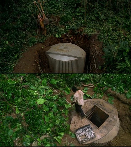 | ("Tabula Rasa") | Após Sayid retornar da viagem para tentar um sinal para o transmissor, ele reúne um grupo de pessoas e começa a organizá-los em times. Ele diz que precisa de três times — um para pegar eletrônicos, um para coletar água da chuva no caso de ocorrer e um para começar o racionamento de comida. Após a cena ser cortada, Sayid pode ser ouvido ao fundo falando "... e eu vou precisar de um terceiro grupo para começar a construção de...". Ele já havia feito três grupos, e ele não mencionou essa tarefa na lista inicial. | Diálogo |