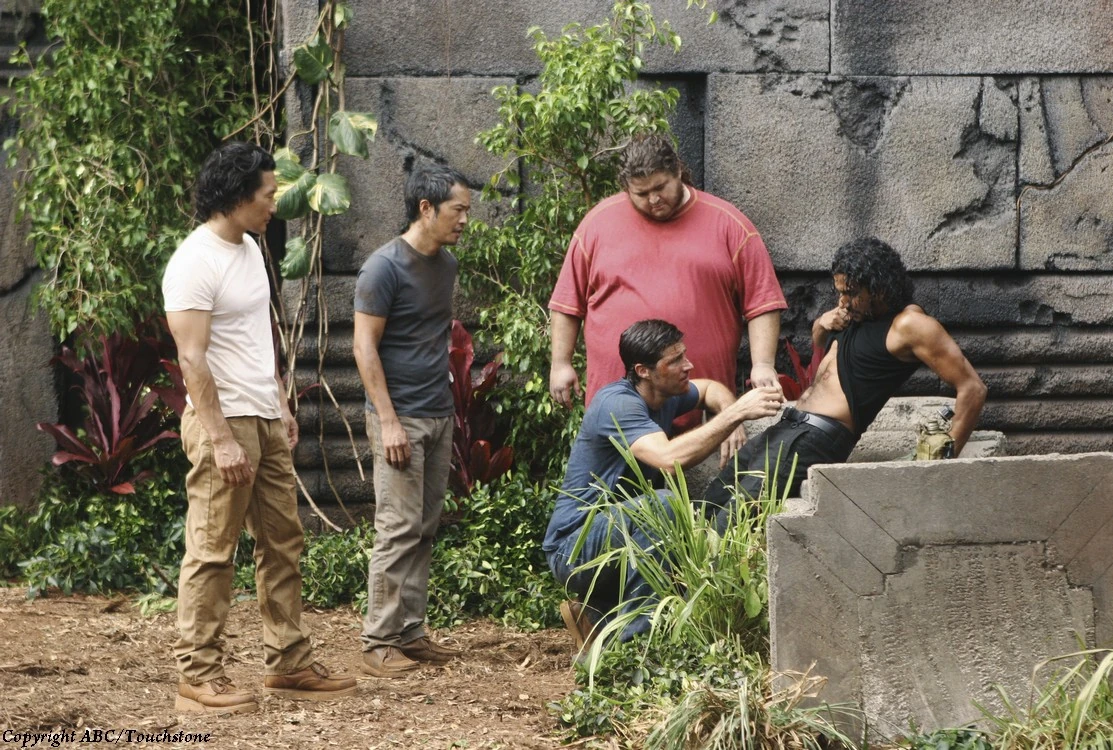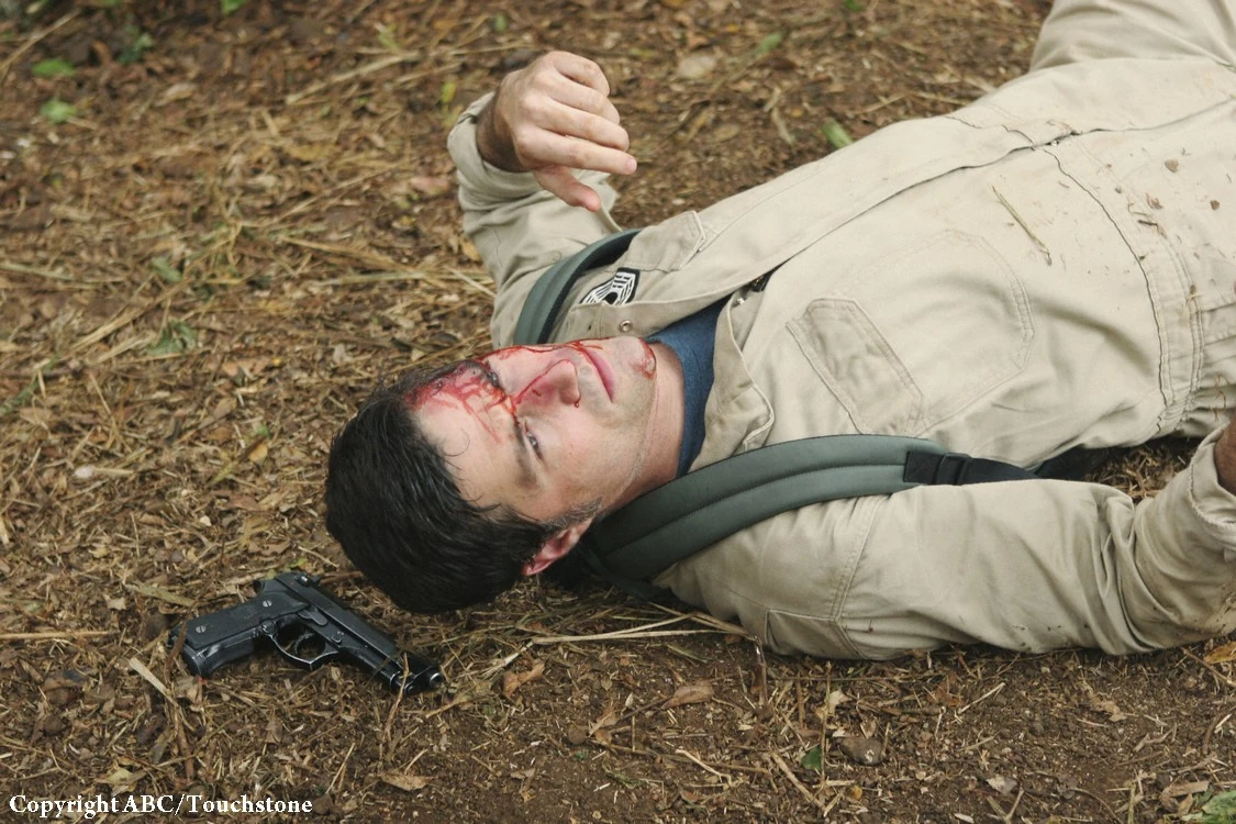 Assim que termina de ajudar a maior parte dos sobreviventes, Jack vai ajudar a si próprio. Ele pega agulhas e linhas e vai para um pedaço afastado na praia. Depois de tirar a camiseta, vê que tem um grande corte nas costas. Na hora, Kate Austen aparece, esfregando seus pulsos, e vê Jack com dificuldade. Ela a ajuda a costurar a ferida, e ele lhe conta que quando estava fazendo uma cirurgia durante sua residência, cometeu um grande erro, e o medo o controlou. Ele contou até cinco e o medo foi embora.