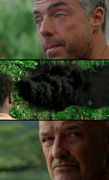 A despeito das objeções de Richard, Bram agarrou Ben e o levou para a estátua com três outros homens armados. Bram confrontou o impostor, e ficou chocado quando a estidade lhe revelou que Jacob estava morto. Concluindo que Bram e os demais eram "guarda-costas" de Jacob, a entidade lhes deu permissão para partir. Ao invés, Bram e seus homens abriram fogo com ele, aparentemente o atingindo várias vezes. A entidade então desapareceu atrás de um pilar, transformando-se no monstro de fumaça e entrando pela porta principal, lançando Bram e seus homens de um lado a outro da sala e os matando a todos, embora Bram temporariamente repemiu a entidade ao desenhar um círculo de cinzas ao seu redor (i.e. o Monstro não podia agarrá-lo enquanto ele estava dentro do círculo, então lançou um pedaço de rocha contra ele, atingindo-o e lançando-o para fora). Ben, que havia se refugiado em um canto, observou o monstro sair pela mesma porta que havia entrado. Ele se virou e deu de cara com a entidade, que estava atrás dele e havia retornado à forma de Locke. A entidade então desculpou-se por Ben tê-lo visto "daquele jeito", confirmando ao aturdido Ben que a entidade era, de fato, o monstro de fumaça. Além disso, a entidade parece ser invulnerável a armas convencionais em sua forma atual; Bram recolheu uma bala atirada contra a entidade e percebe que ela está amassada ou danificada, pelo fato de ter ricocheteado o corpo da entidade.