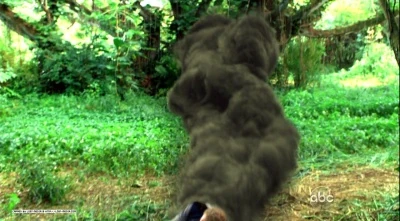 Mais tarde, fazendo seu caminho de retorno pelo Território Negro, carregando as dinamites necessária para explodir a tampa da escotilha, o grupo é atacado novamente. Essa foi a primeira vez que o Monstro realmente foi visto. Apareceu como espirais de fumaça, seguidos do usual barulho e explosões ao fundo, derrubando árvores. Locke estava confiante de que ele não seria ferido e decidiu avançar em vez de correr para longe. Desta vez, entretanto, o Monstro o atacou e derrubou-o no chão. Após olhar para cima apavorado, Locke se levantou e começou a correr freneticamente. Ele foi então "agarrado" pelo Monstro e arrastado pelo chão. Nesse meio tempo, Jack retornou e conseguiu agarrar Locke pelos braços. Locke, então, é puxado para um buraco no chão, mas Jack travou seus braços nos de Locke para prevenir que ele caísse lá dentro. Locke disse a Jack que tudo ficaria bem e mandou soltá-lo. Mas Jack recusou-se, ordenando a Kate que pegasse dinamite em sua mochila e jogasse no buraco. Quando ela fez isso, uma grande explosão ocorreu e Locke foi libertado. Uma nuvem de fumaça foi vista aparecendo e "fugindo" do grupo. ("Exodus: Parte 2")