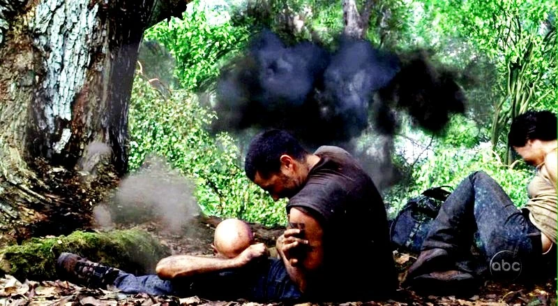 O Homem de Preto, avisou Jin que deveria deixar seus ferimentos resirarem e deixou seu acampamento sob os cuidados de Sayid. ("The Package")