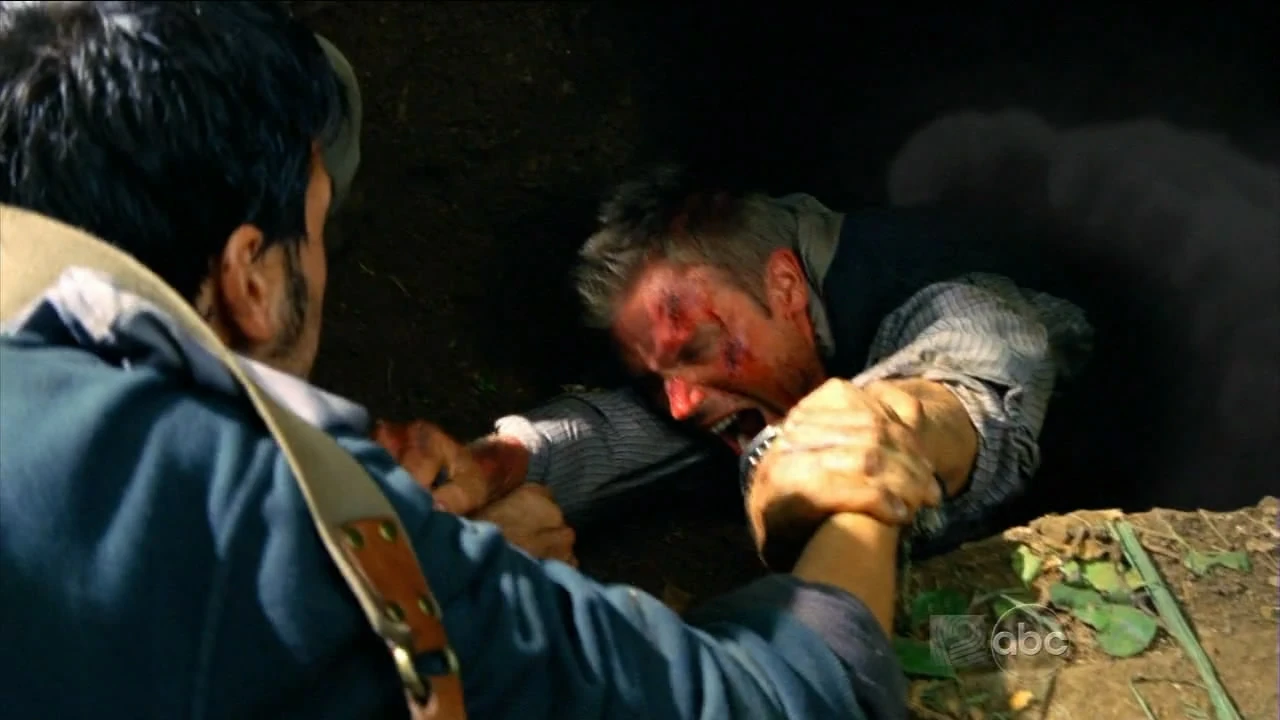 John Locke é arrastado para dentro dum buraco por Lostzilla.
