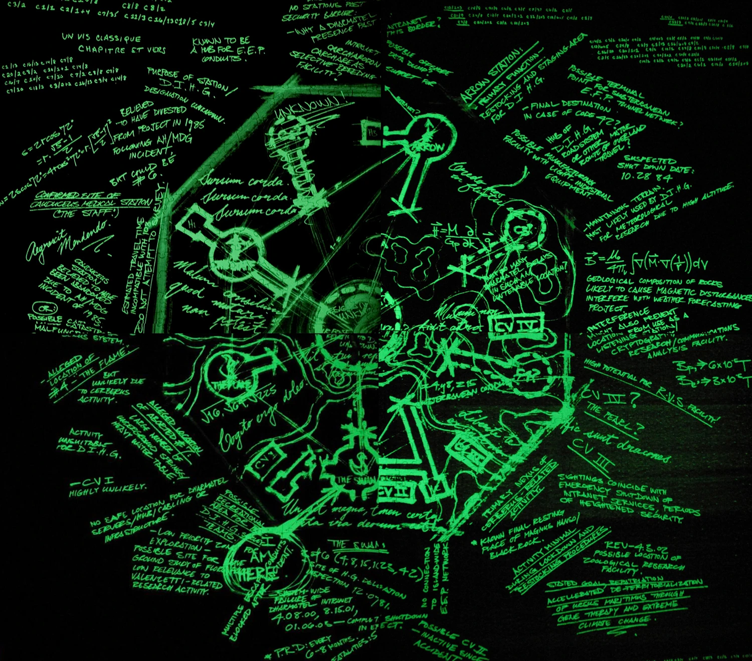 Fora de filmes, Daniel explicou que, durante a construção do Cisne, uma broca perfurou um bolsão de energia eletromagnética, causando uma descarga catastrófica, que precisou ser colocada sob muito concreto. Por segurança, um protocolo também foi criado, para que, a cada 108 minutos, a carga sob o concreto fosse contida, prevenindo uma catástrofe ou, como Kelvin Inman disse, salvando o mundo.