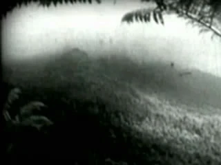 Alvar Hanso narrando enquanto mostram um floresta de aparência tropical coberta por fumaça..