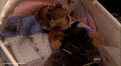- Клэр сделала из костей животных и меха куклу, как замену её похищенному сыну Аарону. («Маяк (серия)»)