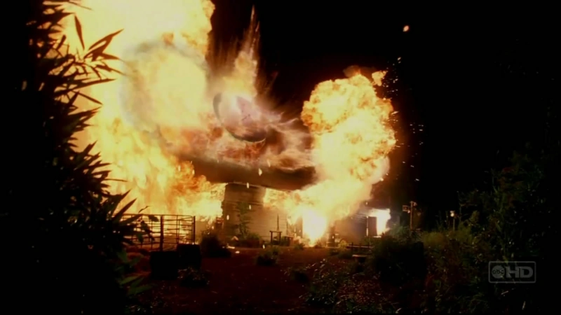 Снаружи станция Пламя похожа на ферму: загон для коров, лошадь Беа Клю. Там же располагалась спутниковая антенна. Но система связи не работала из-за взрыва станции Лебедь и электромагнитного выброса, как говорилось в эпизоде «Введите 77». Позже мы узнаём, что связь блокировалась с помощью оборудования станции Зеркало. Также снаружи замечены громкоговорители, но неизвестно работают ли они.