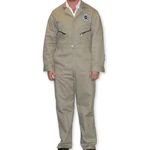 Fabric: 8.5 oz. Twill Blend: 100% Cotton ~ Finish: Pre-shrunk ~ Closure: Zipper front closure ~ Pockets: Two sewn-in front pocket, two back hip pockets with left pocket zipper, two zippered breast pockets, rule pocket ~ Collar: One-piece top stitched ~ Care: Industrial Wash ~ Other: Side vent opening and sized to be worn over clothes ~ Color: Tan | |||||||