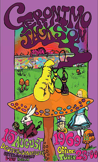 - A Geronimo Jackson poster on the wall of the DHARMA cafeteria features Alice, the White Rabbit and the 'hookah-smoking caterpillar' on a toadstool. ("He's Our You")