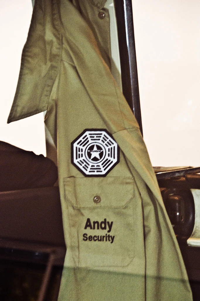 - Andy's jumpsuit was one of the props featured at "The Vilcek Foundation Celebrates LOST" exhibition, and it hung inside the DHARMA van.