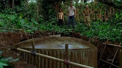 Walt passes Michael some water as they work on the raft. They talk about what they’ll do when they get rescued. Suddenly, Michael stumbles, collapsing and ordering Walt to get Jack. Walt finds Kate and Sun, and Kate takes up the pursuit to find him. At the Hatch exterior, Jack, Locke, and Sayid discuss opening it. Sayid cautions against opening it, says there is no handle on the Hatch door, so perhaps it was never meant to be opened from the outside. As the group heads back, Kate catches up to them and tells Jack about Michael's collapse. After examining him, Jack concludes there was something in his water and finds residue of a substance in his drinking bottle, suggesting foul play.