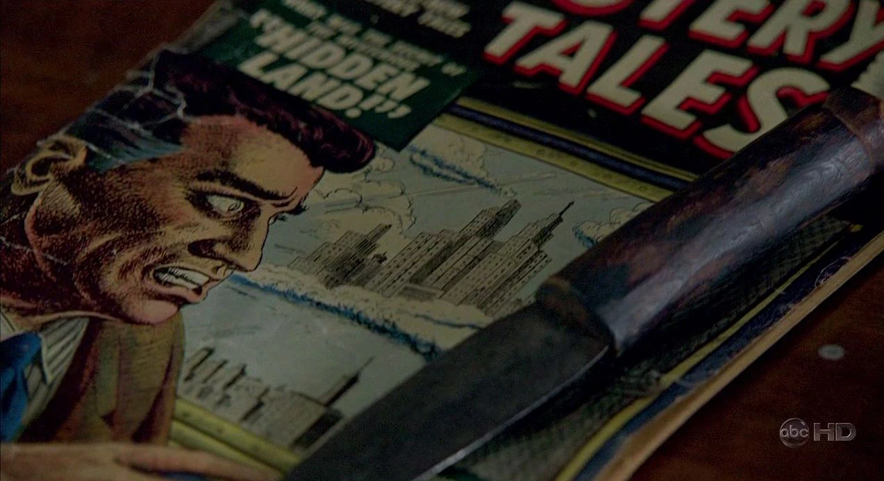- Mystery Tales: The comic book Richard Alpert shows young Locke is "Mystery Tales" issue #40, which was published in April of 1956 by Atlas Comics. The cover contains the text "What was the Secret of the Mysterious Hidden Land?" and "Does it Pay to Ignore the Voice of Warning?" (Literary works)