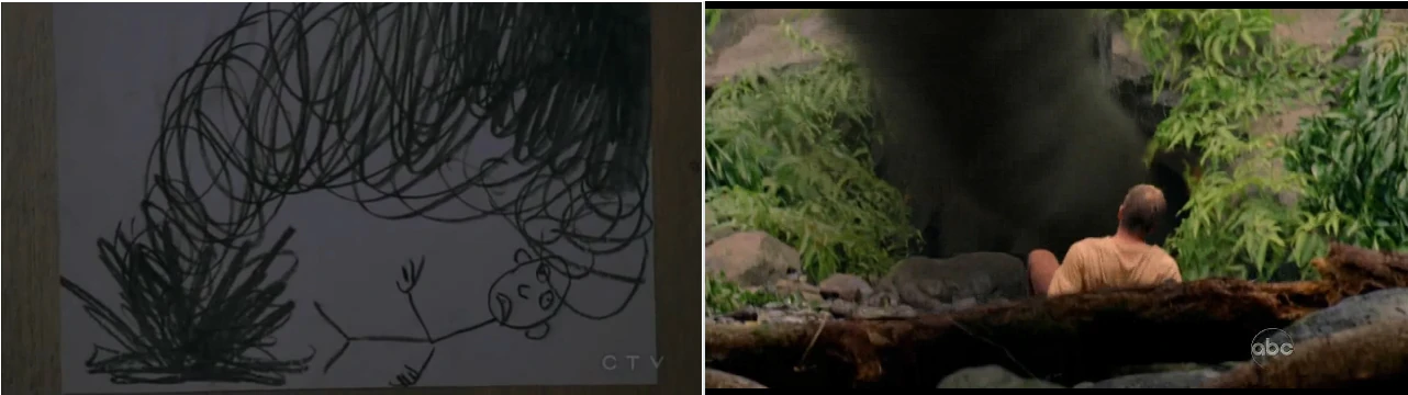- When Richard Alpert visits young Locke, Richard points out a drawing showing black smoke and someone on the ground. This drawing resembles the smoke monster.
