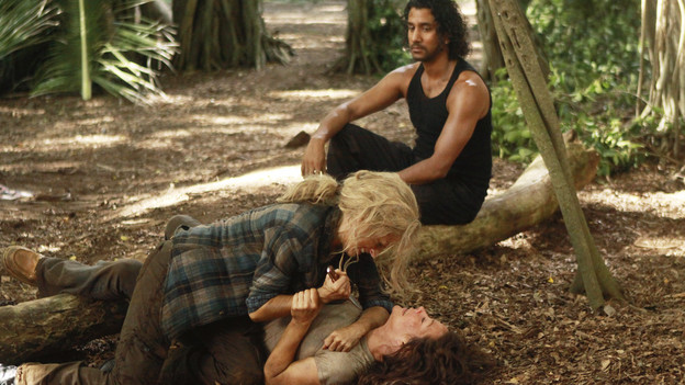 Sawyer saves Claire at the Barracks. ("The Shape of Things to Come") (promotional still)