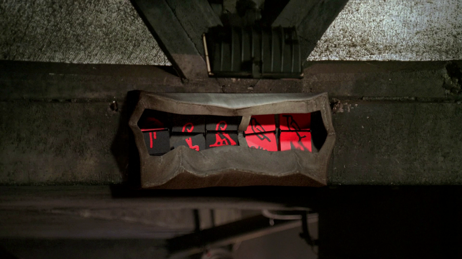 The red and black hieroglyphs from the failure sequence were translated by Damon Lindelof to mean "underworld", although Carlton Cuse noted that they are "subject to interpretation". (Official 'Lost' Podcast/July 31, 2006) Other hieroglyphs are also momentarily visible on the countdown timer as it flips to the 5 final symbols: