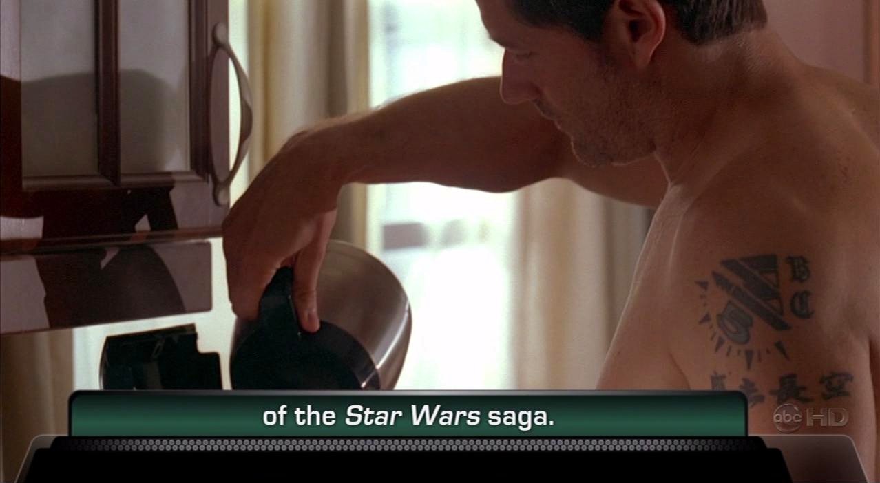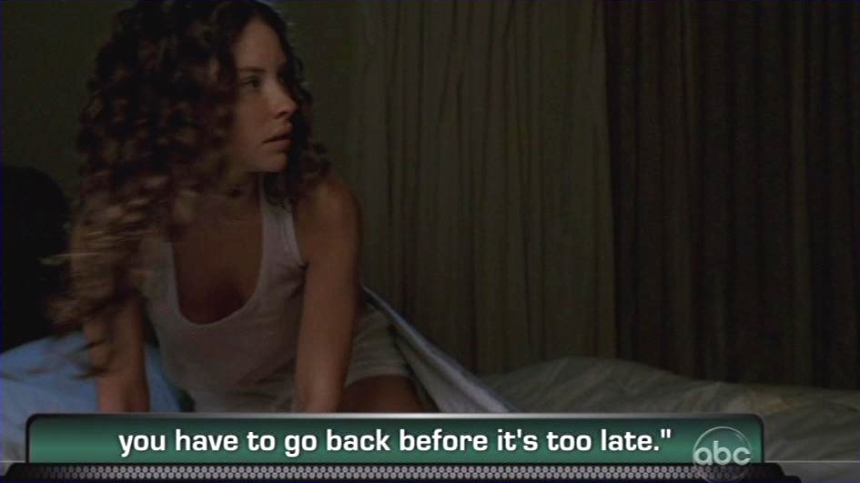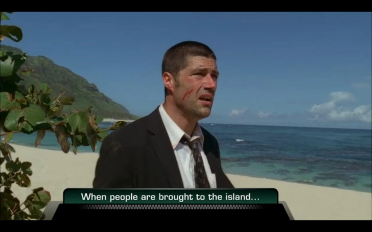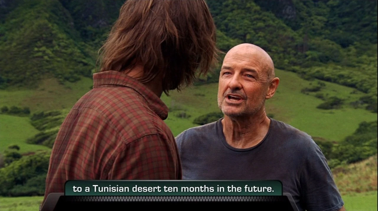 - You may have noticed the absence / of the familiar "whoosh" sound effect. / That is because this is not a flashback / but rather, Desmond is time traveling.